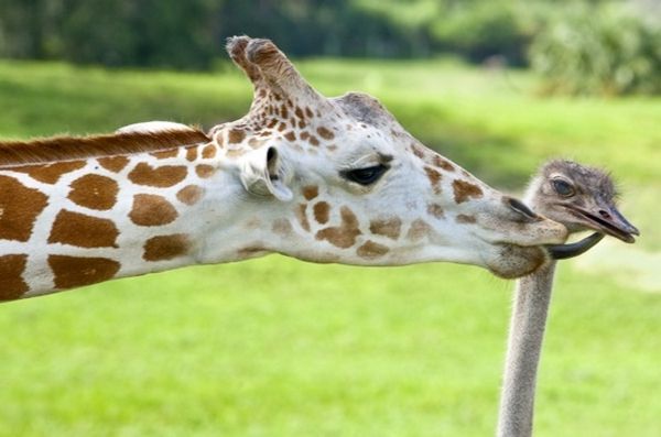 Bea the giraffe and Wilma the ostrich are quite the odd couple at their zoo home in Florida! Giraffes and ostriches don’t usually hang out, but these two bonded despite their differences.