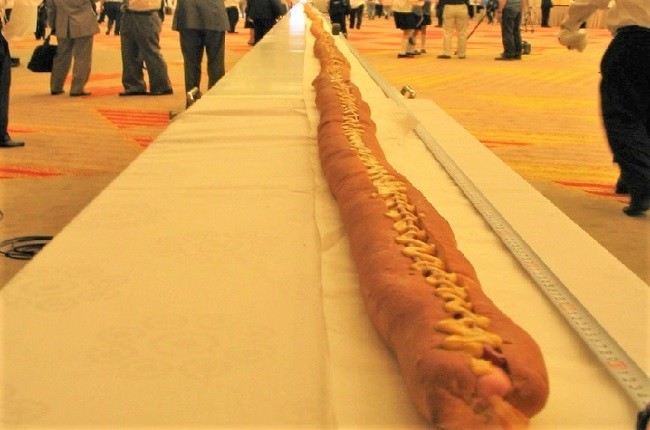 The record was most recently broken in the German town of Flensburg in October 2017 when a team created and served a 218.7-meter-long U-shaped hot dog. It was chopped into pieces after the official measurement and consumed by those in attendance.